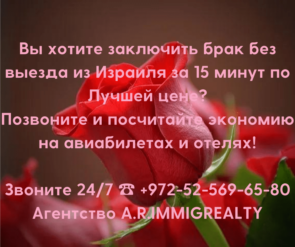 ВЫ ХОТИТЕ ЗАКЛЮЧИТЬ БРАК БЕЗ ВЫЕЗДА ИЗ ИЗРАИЛЯ ЗА 15 МИНУТ И СЭКОНОМИТЬ НА ОТЕЛЯХ И АВИАБИЛЕТАХ?