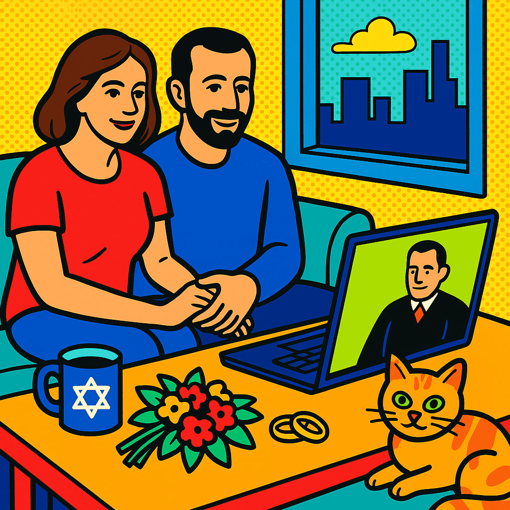 светская форма брака стала возможной прямо на территории Израиля. Нет, пока это не израильский гражданский брак. Он заключен в США (штат Юта) через видеоконференцию Зум. Пара регистрирует гражданский брак за границей, не выезжая при этом из Израиля.